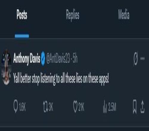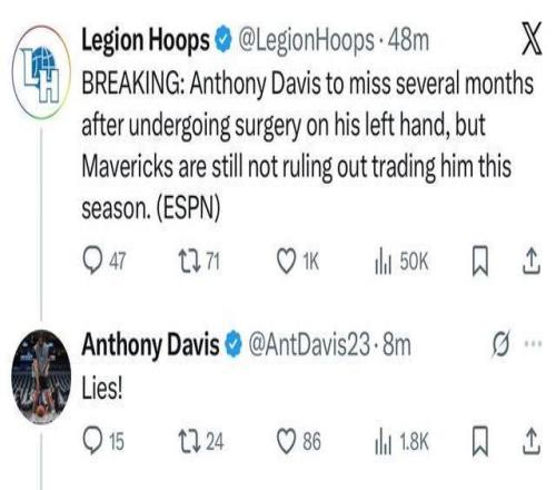 在消息发出后,浓眉第一时间更新个人社媒,他疑似驳斥了Shams的报道:“你们最好别再听信这些应用上的谣言了!”